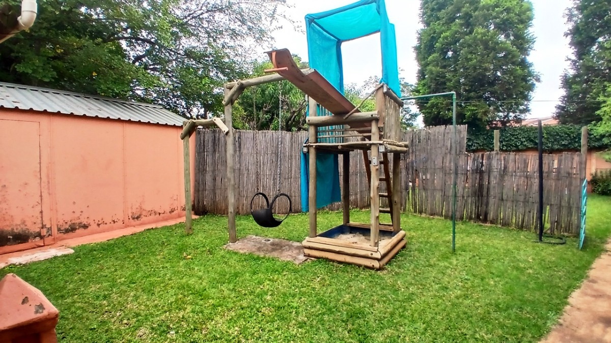 The front yard offers privacy and features a double motorized garage. Entering the backyard you will find 2 carports and a staff toilet. On the other side of the house there is a jungle gym and a tool shed. The lapa is fully enclosed and has an extra bedroom for guests. This is ideal to be used as a garden cottage.