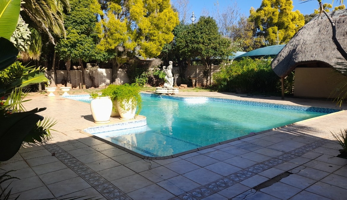 There is a total of 4 bedrooms, the main is a en-suite with a Jacuzzi and a Sauna. The mainbedrooms have a access door leading to the pool. The living room and dining room is open- plan, there is a in-house entertainment area with a built-in braai. A separate study are can also be used as a dining room. The kitchen is big with lots of cabinetry and a big scullery.